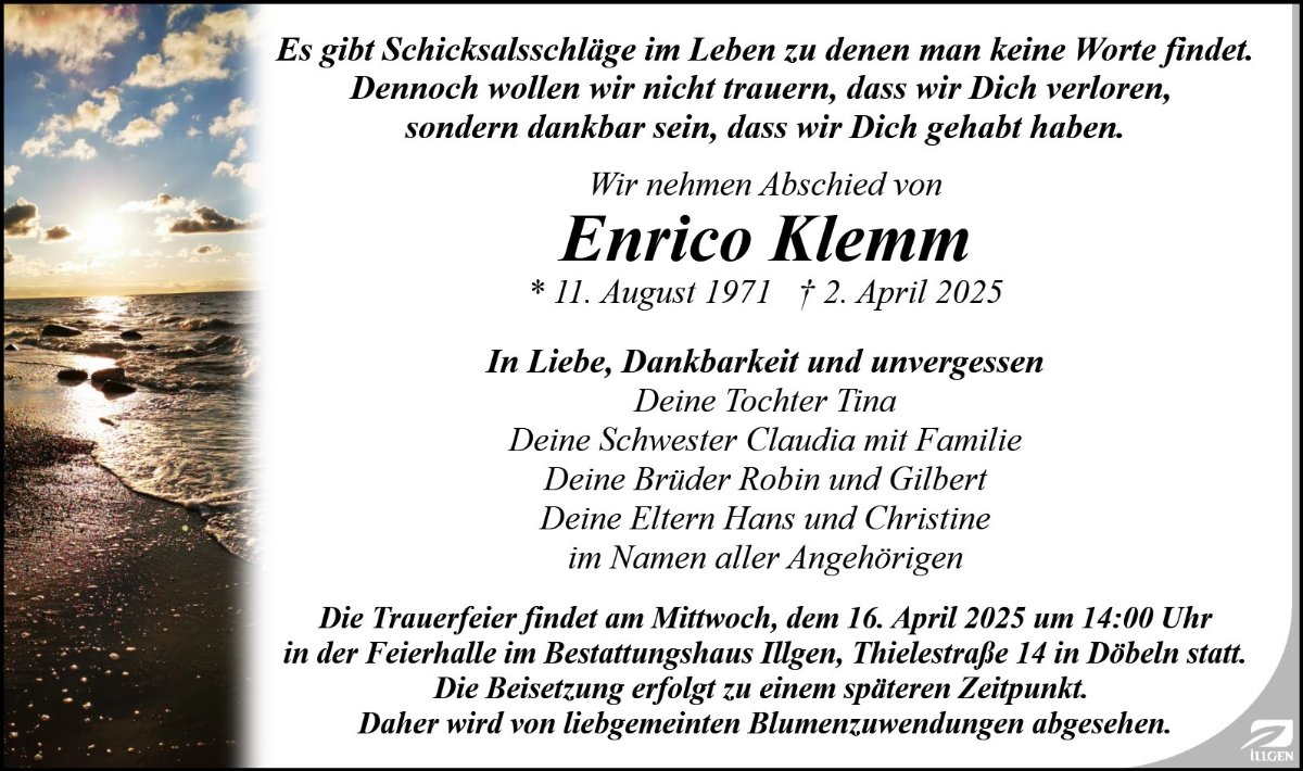 Lieber Enrico, Mutti und ich haben die welt nicht mehr verstanden ,nun verstehe ich die ganze welt nicht mehr weil du nun auch meine Mutti zu dir geholt hast ... pass auf dich und besonders auf meine kleine Mutti hummel 🐝 auf ... Ich denke so viel an euch und ihr seid nie vergessen ... ihr wart toll so wie ihr wart ...